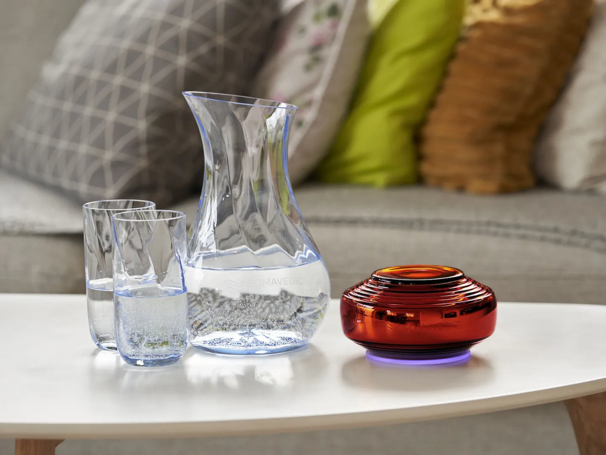 Somavedic Amber 能创造和谐的结构化水,帮助提升你的水分吸收能力。想要达到最佳效果,只需将水杯放在 Amber 附近,建议距离不超过 20 公分(8 英吋)。经过 10 至 15 分钟,即可获得 100% 结构化水的效果。拥有 Amber,让你随时都能喝到如山泉般纯净、高质量的水。